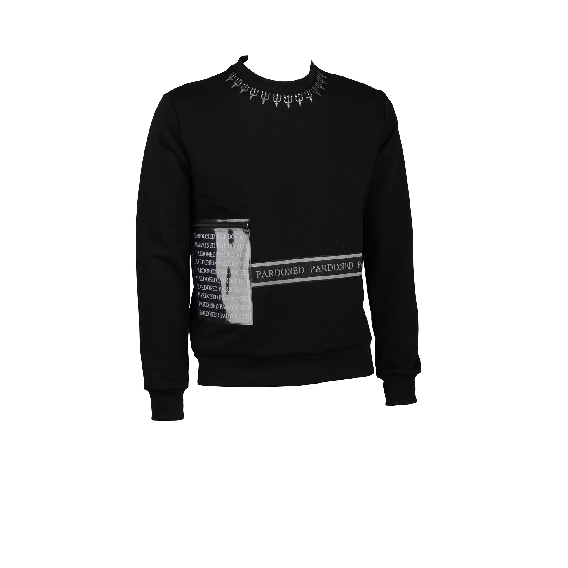 FELPA EXTREME POUCH: Unica nel suo genere,nota per il marsupio incorporato ad essa. Impreziosita da un girocollo di tridenti realizzati con microbrillanti coreani,pensati per creare lucentezza. Contenuta nella collezione ''only for crazy people''.