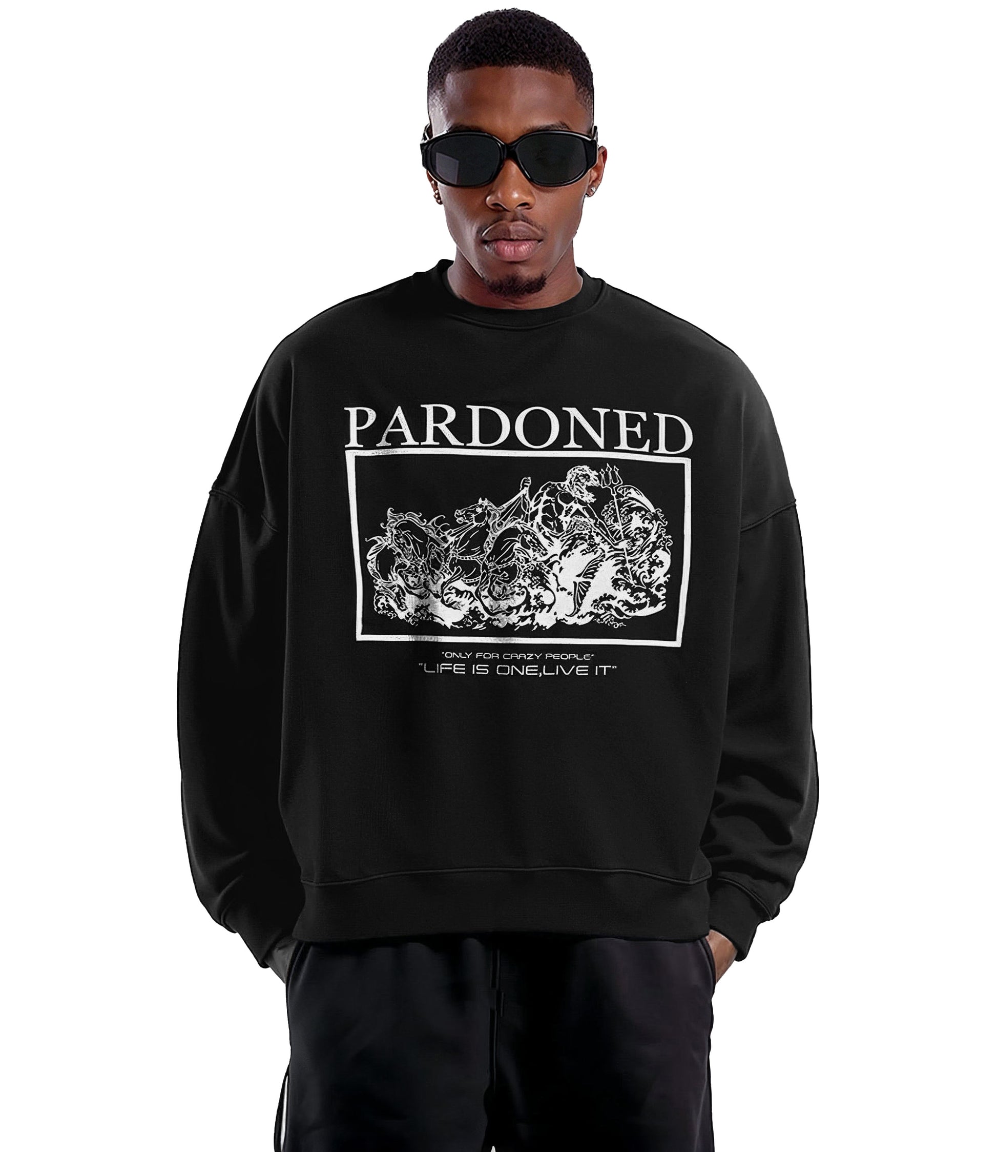 Felpa in cotone adornata da una grafica che ritrae Poseidone.